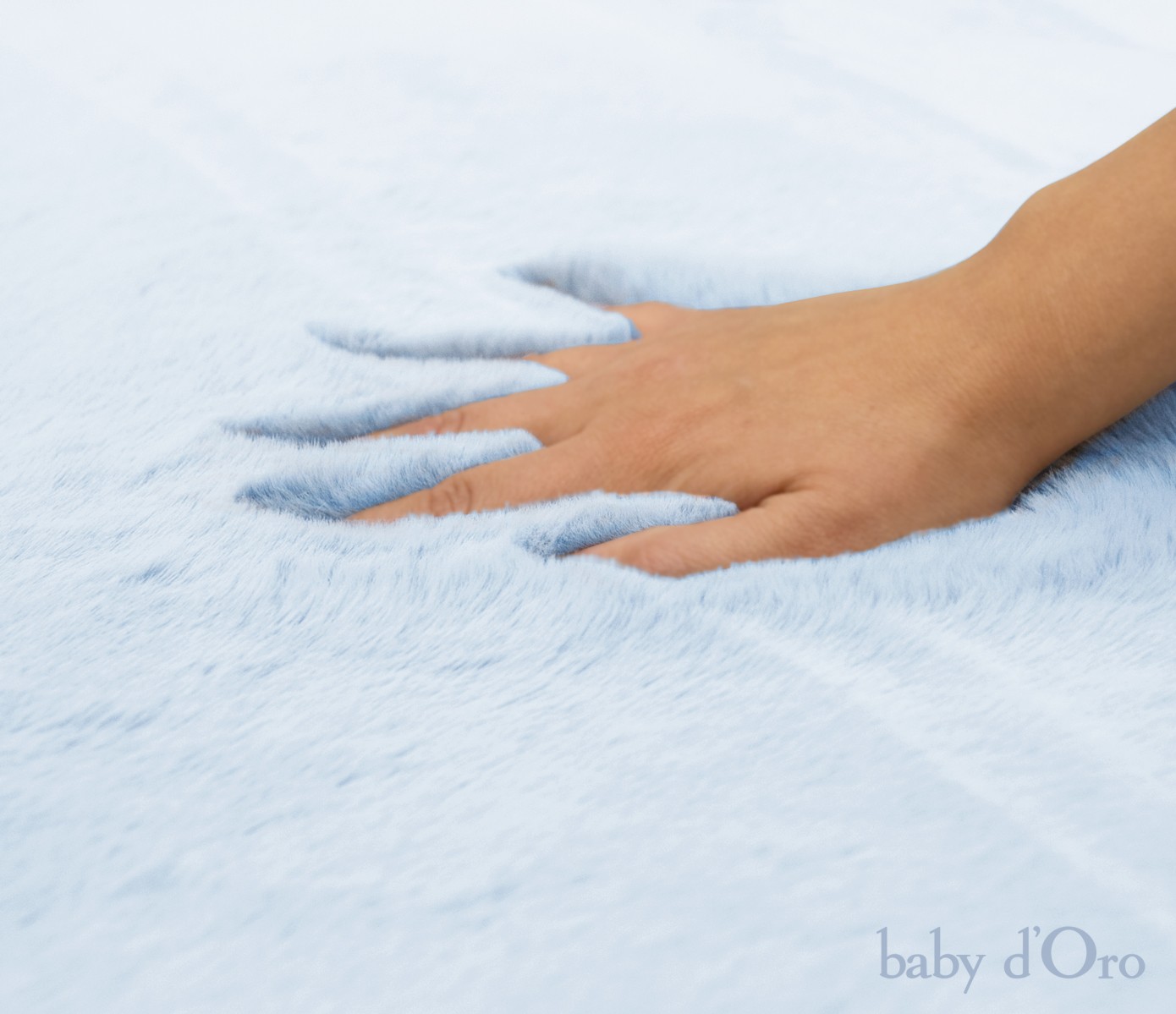 Extremely soft, blue rug is not only a beautiful decoration for a children's room, but also a practical place to play. Thanks to its fluffiness and thickness, it perfectly insulates from the ground. It will work well when learning to sit down, play and rest. The rug is made of high-quality fabric with long pile, reminiscent of delicate bunny fur. Our rug will be irreplaceable in the first months of your baby's life. It will also be a fantastic gift for a preschool child.