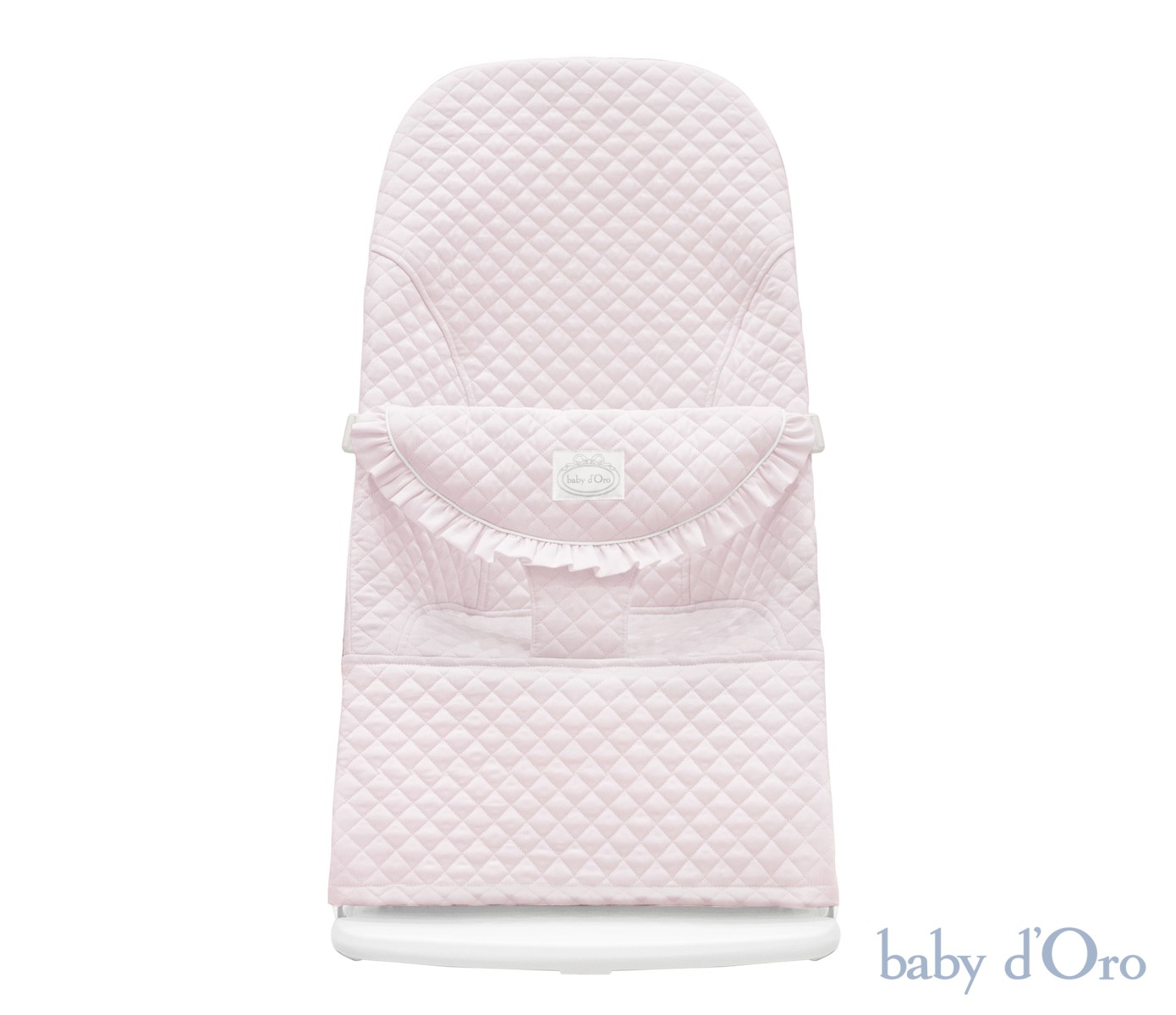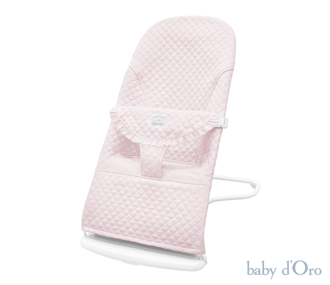 An elegant, powder baby bouncer decorated with a charming frill in a shade of delicate pink is a combination of beauty and functionality. Several backrest adjustment positions and the possibility of gentle rocking make it very comfortable. It has a 3-step tilt adjustment. You can easily and safely change the position of the baby bouncer from vertical (for playing) to horizontal (for sleeping and resting). The baby bouncer is equipped with belts, thanks to which your little one will feel comfortable and safe. The baby bouncer supports the development of your child's motor skills and sense of balance. It moves thanks to natural and spontaneous movements. The ergonomic shape of the bouncer allows for the correct positioning of the head and spine, which ensures the correct posture of the child while lying down. Our bouncer has a special, material seat that adapts to the child, properly distributing their weight. All materials used in the bouncer are delicate and safe for the Baby. The mechanism regulating the level of inclination has protection against accidental folding.Thanks to the simple folding system, the bouncer is easy to carry and convenient to store. The upholstery of the bouncer is stable and does not move, because it is secured with two fastening rubber bands. The safety belts fastened with "click" type snaps will not allow even the most clever toddler to unfasten them. The lounger meets European standards: EN 12790:2009. The cotton cover is removable for washing and easy to keep clean.