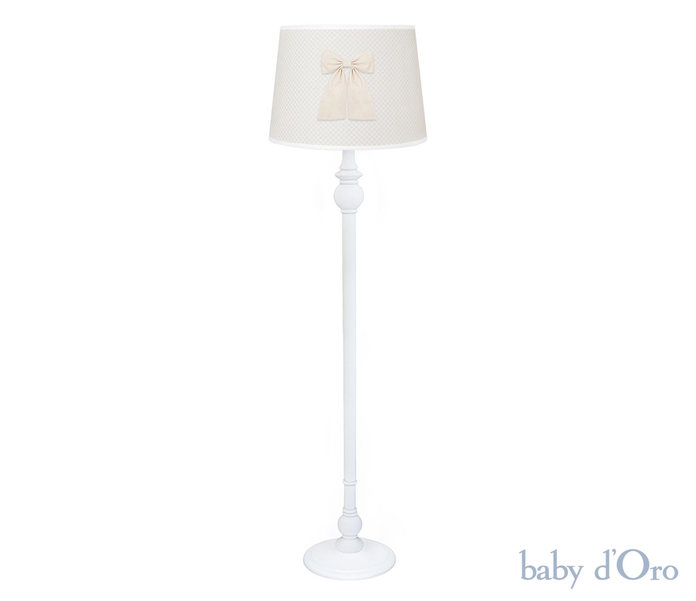 Beautiful white floor lamp with a stylish lampshade. A classic beige bow adds charm to the lamp. The lamp is ideal for a children's room.