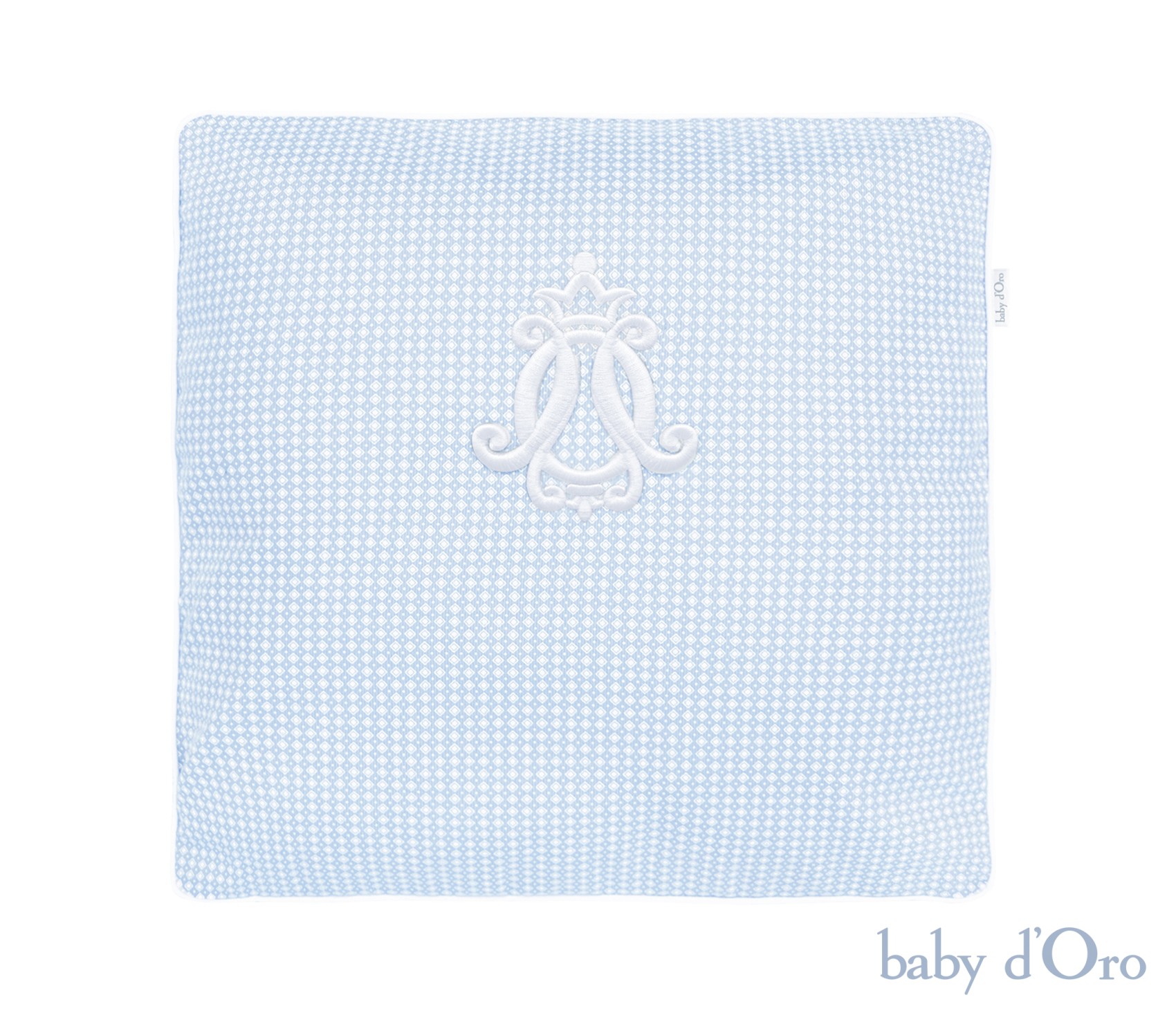Beautiful blue decorative pillow with white mini squares. Perfect for the children's room.