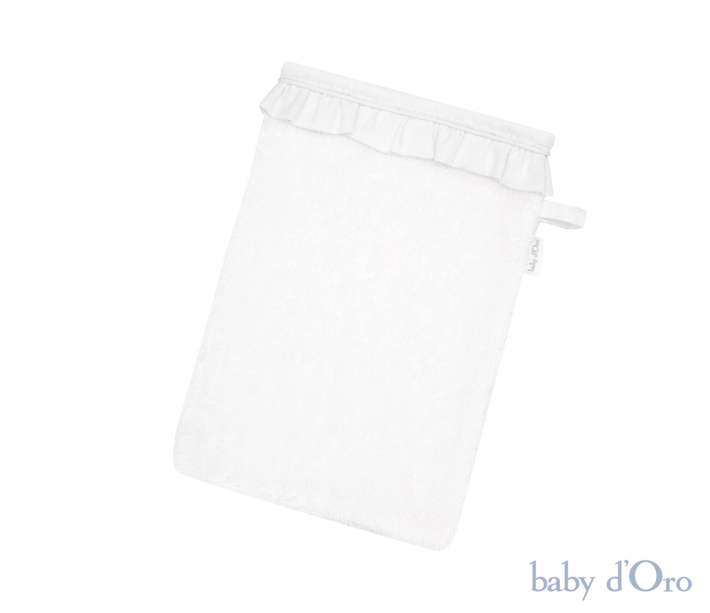 Pratique et élégant, ce gant de toilette pour bébé est un élément indispensable de la trousse de naissance. Confectionné en éponge de coton de haute qualité, il est décoré d’un joli volant blanc. Un crochet fonctionnel en forme de boucle permet de suspendre facilement le gant. Notre gant rendra le bain et le soin de votre bébé extrêmement confortables.