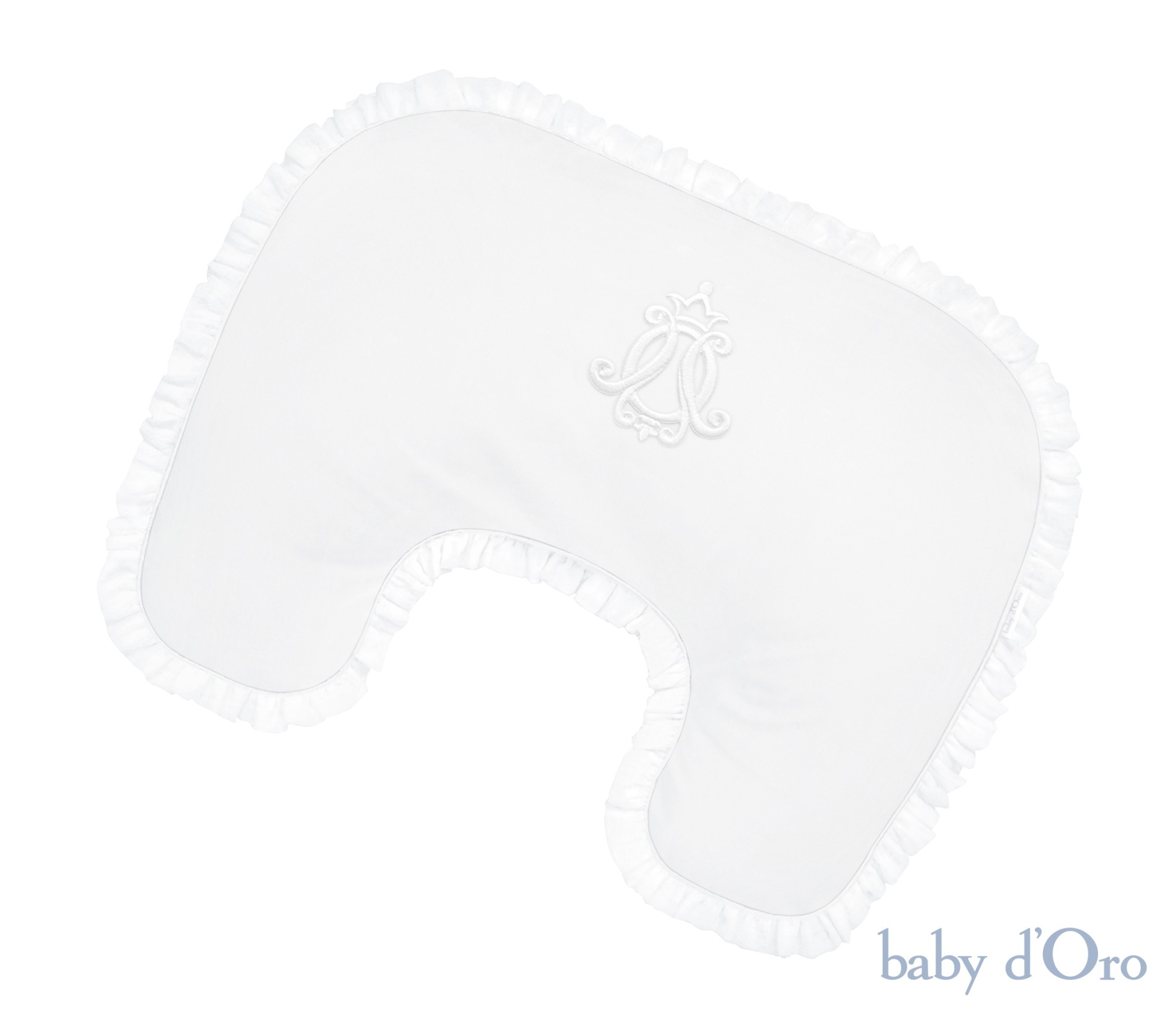 Funkcjonalna i elegancka poducha do karmienia typu "rogal" ozdobiona uroczą białą, falbanką. Całość została udekorowana białym emblematem oraz delikatną wypustką. Poduszka jest niezbędna podczas pierwszych miesięcy życia Maluszka. Ułatwia bezpieczne i komfortowe ułożenie dziecka podczas karmienia. Do wypełnienia poduchy zastosowane zostały bezpieczne, atestowane kuleczki poliestrowe FillBall. Nasza poduszka do karmienia jest niezastąpiona zarówno podczas karmienia piersią jak i butelką. Ponadto zapewnia ona wspaniałe podparcie dla Maluszków trenujących leżenie na brzuszku lub siadanie.