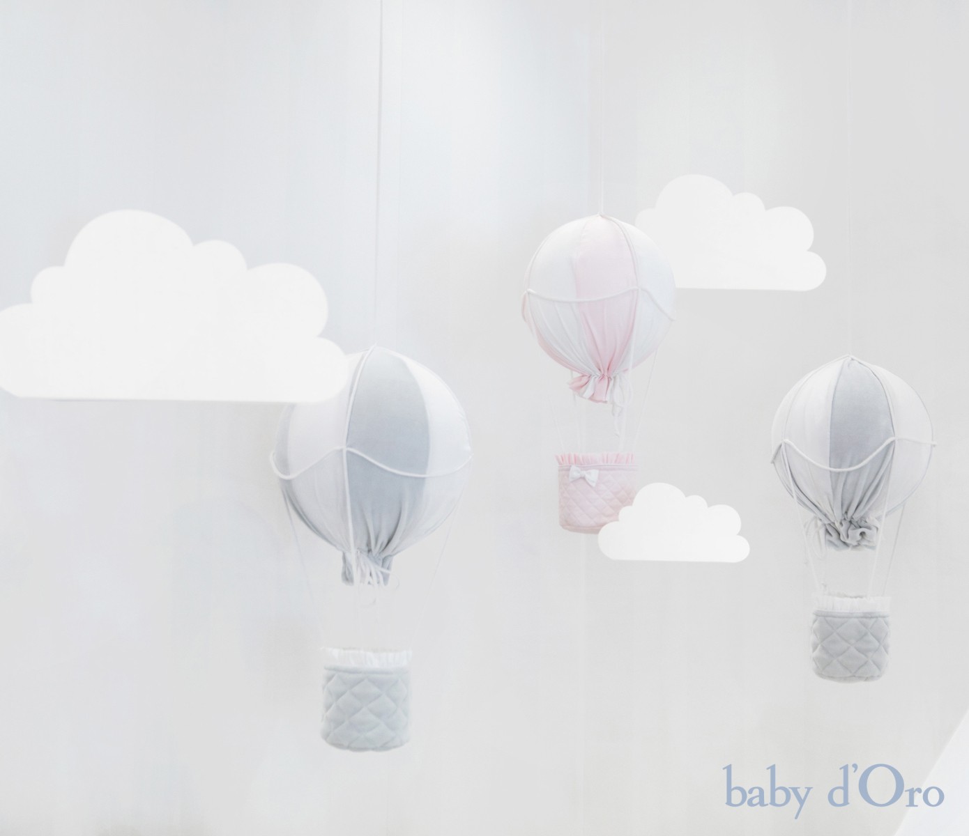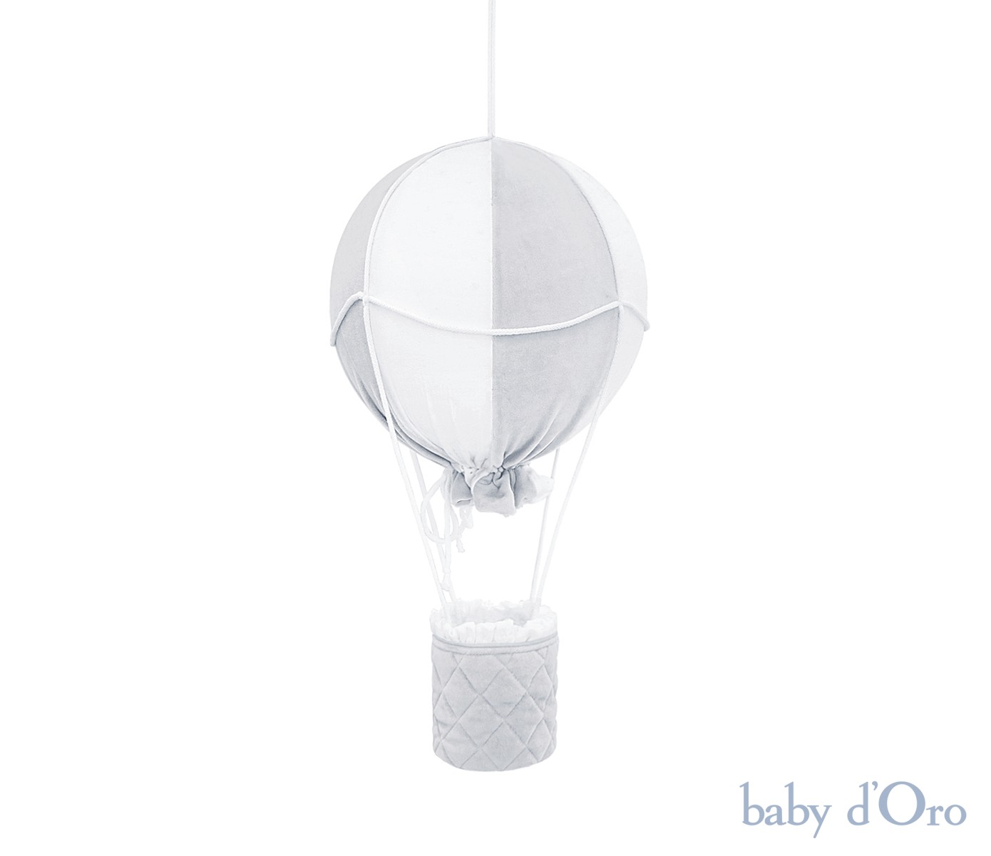 Balon dekoracyjny to idealny pomysł na ozdobę w pokoju dziecięcym. Rewelacyjnie prezentuje się zawieszony pod sufitem lub jako dekoracja okna. Balon Lovely Grey wykonany jest z szarej welurowej tkaniny połączonej z delikatną białą satyną. Welurowy, pikowany koszyczek balonu ozdobiony został uroczą białą mini falbanką. Balon posiada długi sznurek, dzięki któremu można zawiesić go na dowolnej wysokości.
