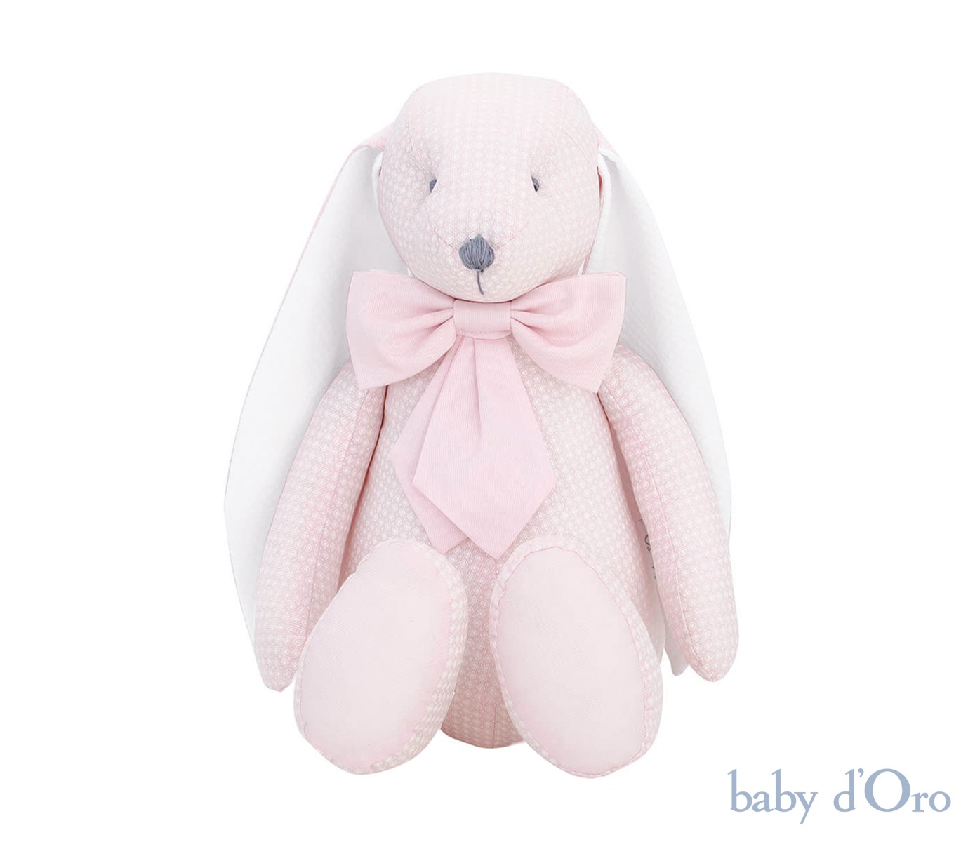 Jedyny w swoim rodzaju króliczek uszyty z miękkiej bawełny, ozdobiony uroczą kokardką to idealny "pierwszy przyjaciel" każdego dziecka.