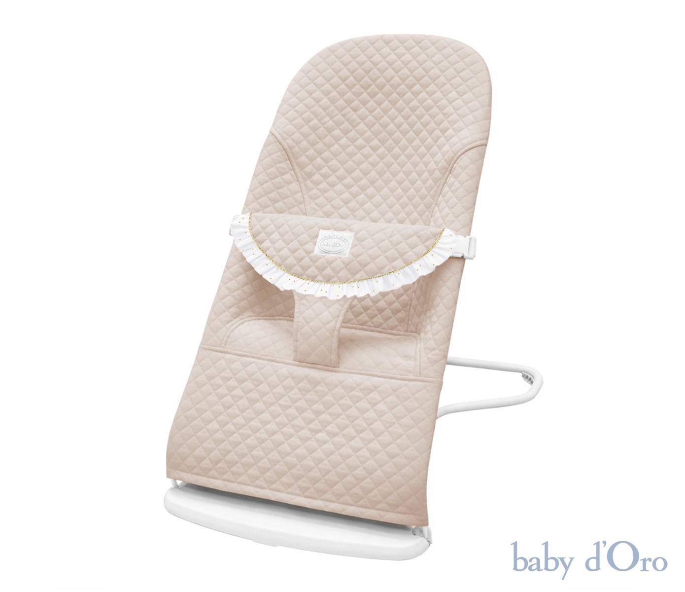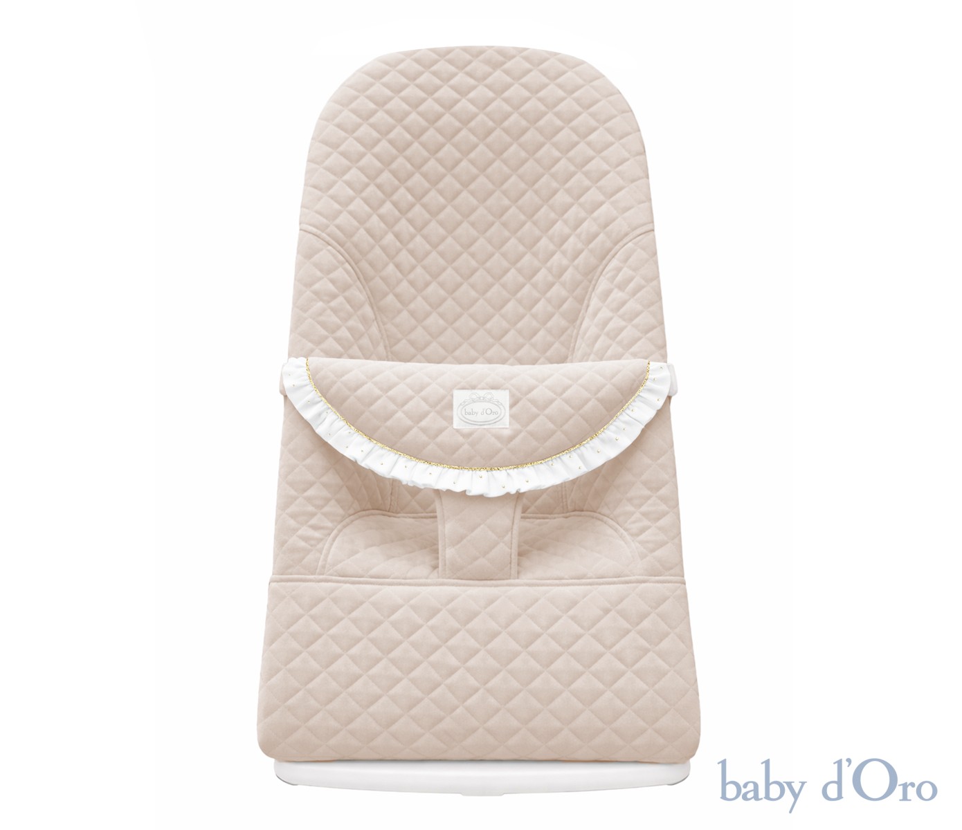 Elegancki, welurowy, beżowy leżaczek ozdobiony uroczą muślinową falbanką w połyskujące złote kropeczki to połączenie piękna i funkcjonalności. Kilka pozycji ustawienia oparcia oraz możliwość delikatnego bujania sprawiają, że jest niezwykle komfortowy. Posiada 3 stopniową regulację nachylenia. Łatwo i bezpiecznie można zmienić ustawienie leżaczka z pozycji pionowej (do zabawy) do poziomej (do snu i odpoczynku). Leżaczek został wyposażony w pasy dzięki którym Twój Maluszek będzie czuł się wygodnie i bezpiecznie. Leżaczek wspiera rozwój motoryki i zmysłu równowagi u Twojego dziecka. Porusza się dzięki jego naturalnym i spontanicznym ruchom. Ergonomiczny kształt leżaka pozwala na prawidłowe ułożenie główki i kręgosłupa, dzięki czemu gwarantuje prawidłową postawę dziecka podczas leżakowania. Nasz leżak posiada specjalne, materiałowe siedzisko, które dopasowuje się do dziecka, odpowiednio rozkładając jego masę. Wszystkie materiały użyte w leżaczku są delikatne i bezpieczne dla Maluszka. Mechanizm regulujący poziom nachylenia posiada zabezpieczenie przed przypadkowym złożeniem. Dzięki systemowi prostego składnia leżaczek jest łatwy do przenoszenia oraz wygodny do przechowywania. Obszycie leżaczka jest stabilne, nie ma możliwości przesuwania się, ponieważ jest zabezpieczone dwiema gumkami mocującymi. Pasy bezpieczeństwa zapinane na klamry zatrzaskowe, typu "click" nie pozwolą, nawet najbardziej sprytnemu Maluszkowi wypiąć się z pasów. Leżaczek spełnia normy europejskie: EN 12790:2009. Zdejmowany do prania, bawełniany pokrowiec, łatwo utrzymać w czystości.