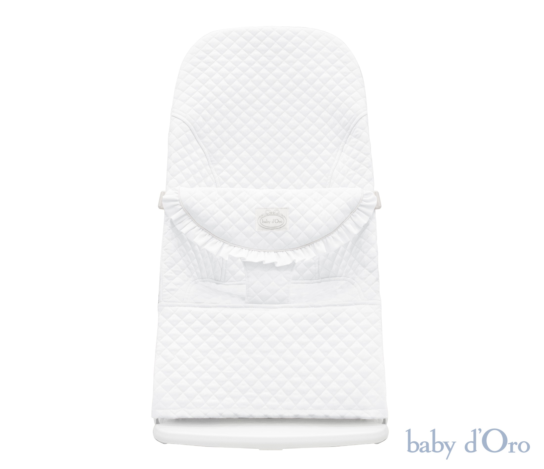 Elegancki, biały leżaczek ozdobiony uroczą białą falbanką to połączenie piękna i funkcjonalności. Kilka pozycji ustawienia oparcia oraz możliwość delikatnego bujania sprawiają, że jest niezwykle komfortowy. Posiada 3 stopniową regulację nachylenia. Łatwo i bezpiecznie można zmienić ustawienie leżaczka z pozycji pionowej (do zabawy) do poziomej (do snu i odpoczynku). Leżaczek został wyposażony w pasy dzięki którym Twój Maluszek będzie czuł się wygodnie i bezpiecznie. Leżaczek wspiera rozwój motoryki i zmysłu równowagi u Twojego dziecka. Porusza się dzięki jego naturalnym i spontanicznym ruchom. Ergonomiczny kształt leżaka pozwala na prawidłowe ułożenie główki i kręgosłupa, dzięki czemu gwarantuje prawidłową postawę dziecka podczas leżakowania. Nasz leżak posiada specjalne, materiałowe siedzisko, które dopasowuje się do dziecka, odpowiednio rozkładając jego masę. Wszystkie materiały użyte w leżaczku są delikatne i bezpieczne dla Maluszka. Mechanizm regulujący poziom nachylenia posiada zabezpieczenie przed przypadkowym złożeniem. Dzięki systemowi prostego składnia leżaczek jest łatwy do przenoszenia oraz wygodny do przechowywania. Obszycie leżaczka jest stabilne, nie ma możliwości przesuwania się, ponieważ jest zabezpieczone dwiema gumkami mocującymi. Pasy bezpieczeństwa zapinane na klamry zatrzaskowe, typu "click" nie pozwolą, nawet najbardziej sprytnemu Maluszkowi wypiąć się z pasów. Leżaczek spełnia normy europejskie: EN 12790:2009. Zdejmowany do prania, bawełniany pokrowiec, łatwo utrzymać w czystości.