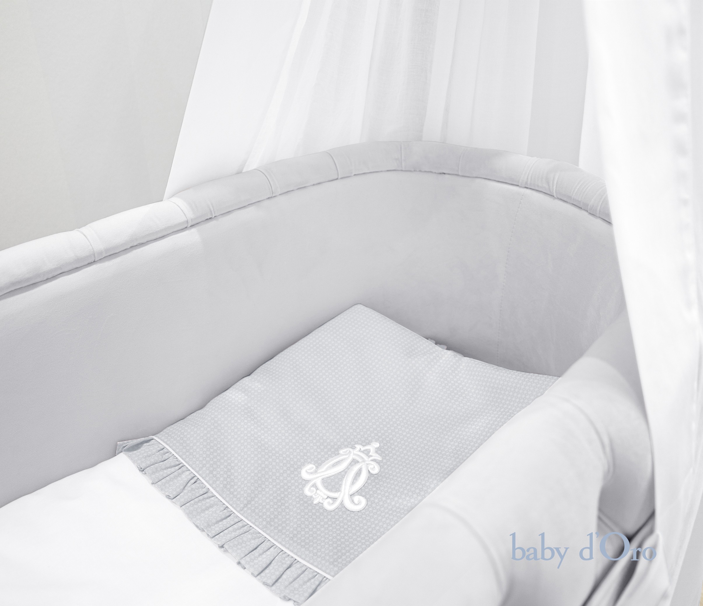 Pościel noworodkowa z wypełnieniem, wykonana z najwyższej jakości tkanin. Biel i delikatna szarość w białe mini kwadraciki tworzą klasyczną kompozycję, którą świetnie podkreśli wystrój dziecięcego pokoiku. Haftowany, biały emblemat i subtelna wypustka nadają całości wyjątkowego charakteru. Ze względu na mały rozmiar pościeli noworodkowej można używać zarówno do wózka, w czasie spacerów w chłodniejsze dni, jak i do łóżeczka dostawnego, kołyski, łóżeczka wiklinowego oraz kosza mojżesza. Pościel jest kompaktowa- wkład i poszewka tworzą całość.